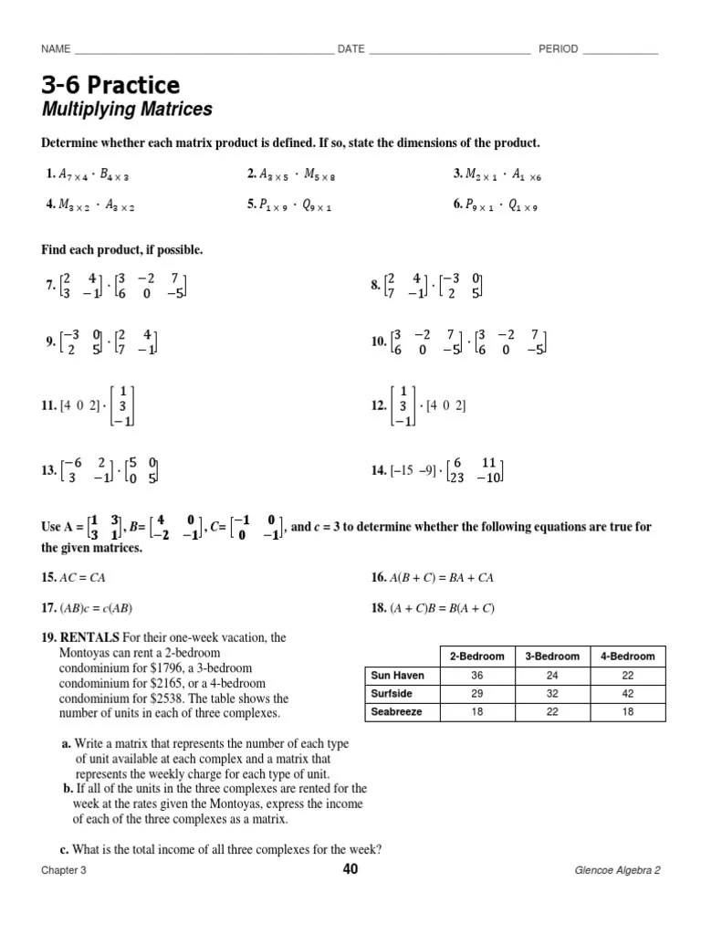 Carrying passengers as a risk factor the number of deaths per 10 million trips. Matrix problems come with answer key in each worksheet. Work out the matrix 3a ………………………… (1). Browse our new selection of printable math practice worksheets for your kids for more math practice! Matrix operations practice worksheet this is a two page worksheet that includes the following matrix operations: